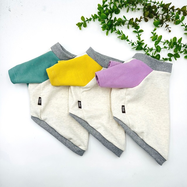 くすみ春カラー ラグラン ・ミント ・イエロー ・パープル 希望の方は、背中に犬種いれれます (+500円) 背中に入る文字は、ローマ字犬種のみ 名前は、不可になります。 綿100%の伸縮性あり ミニ裏毛で一年中使いやすいです。 袖カラーは、やや厚手 ☆サイズは、画像のサイズ表をご覧下さい。 ☆袖丈 ・長袖 ・長袖短め(長袖-2cm) ・半袖 ・タンクトップ タンクトップは、お腹が袖色になります。 ☆ご注文後、お作りしますので 発送までに1日~30日ほどお時間を頂きます。 【土日祝は、除きます。】 ☆ハンドメイドの為、生地の素材により 多少大きさが前後する事がございますので ご了承下さい。 ☆手洗い洗濯をおすすめします。 干す前に手で形を整えてから干すと シワができにくいです。 ☆ サイズの偏りや生地在庫の状況によっては、キャンセルとなる場合があります。 あらかじめご了承ください。 ☆ペーパーレスの為、 納品書を希望の方は備考欄に その旨をご記入ください。